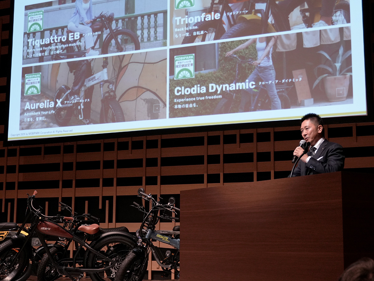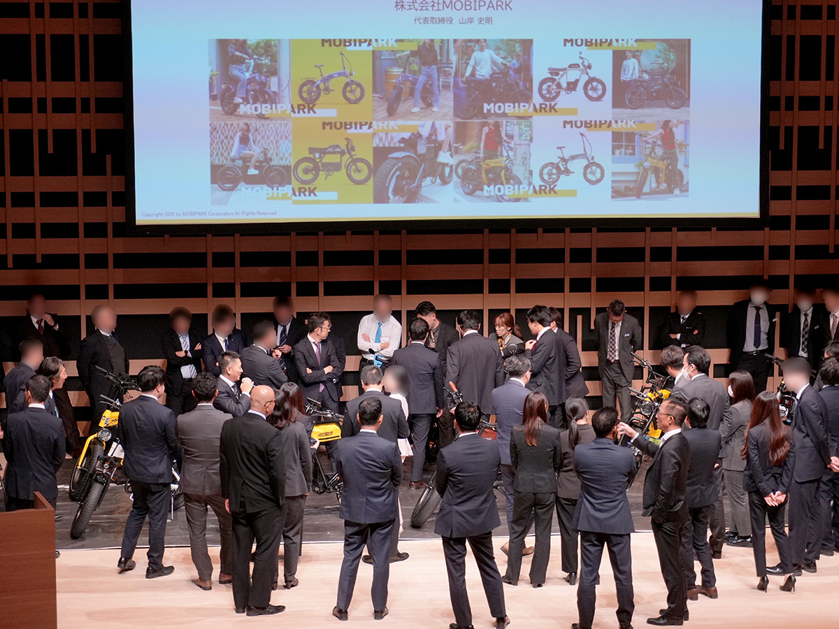 続いて行われたのは、今回の目玉となる株式会社MOBIPARKの「事業計画発表会兼E-BIKE車両展示会」である。