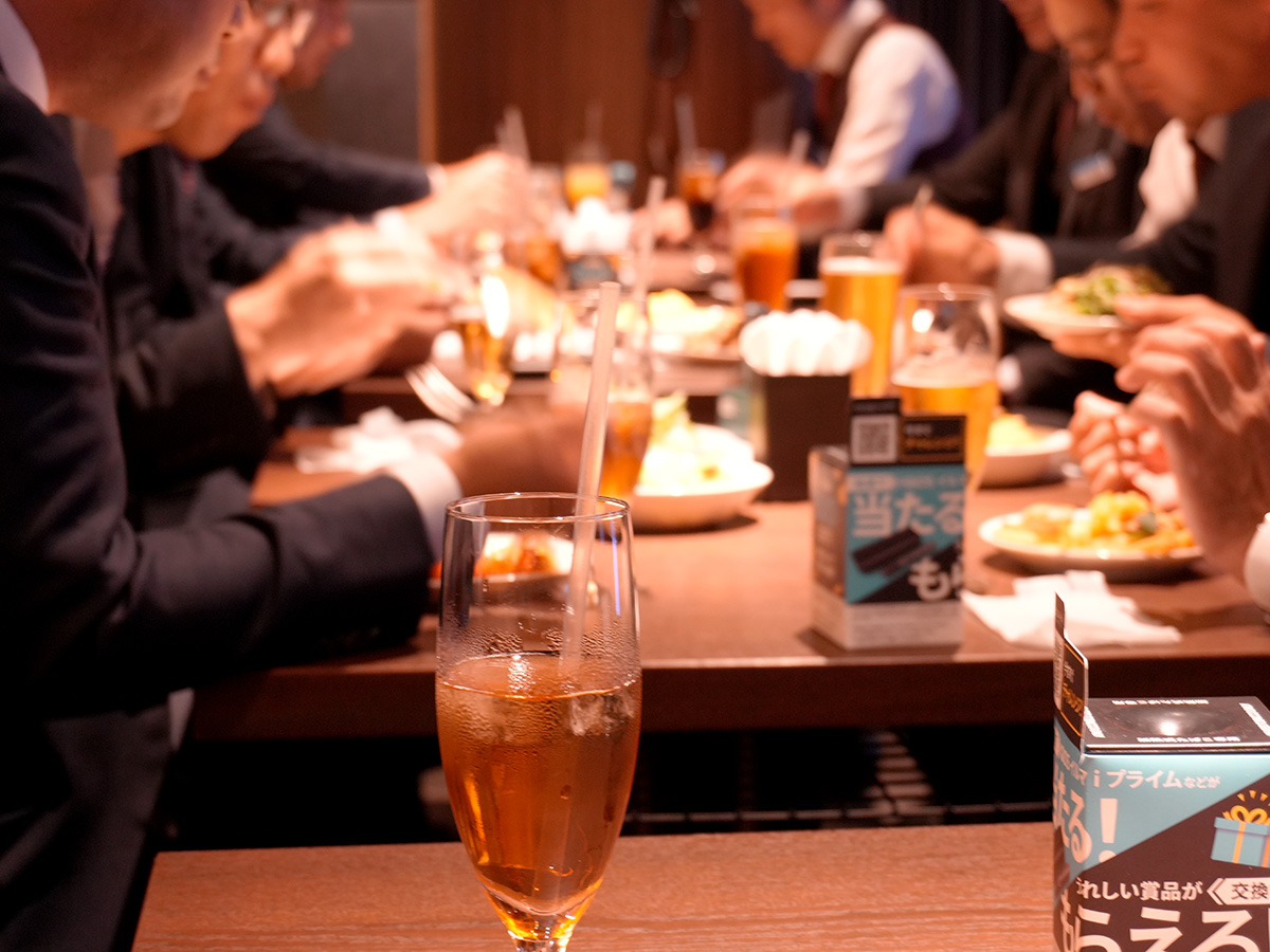 報告会終了後には場所を移動して懇親会も行われ、グループに所属している従業員が会社の垣根を越えて、食事やゲームで親睦を深めた。