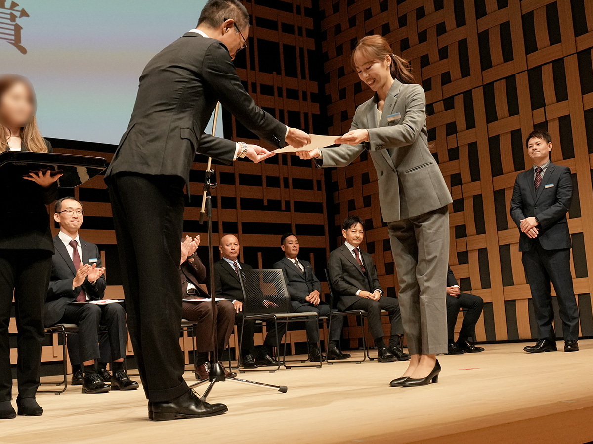 表彰状を授与される優秀社員